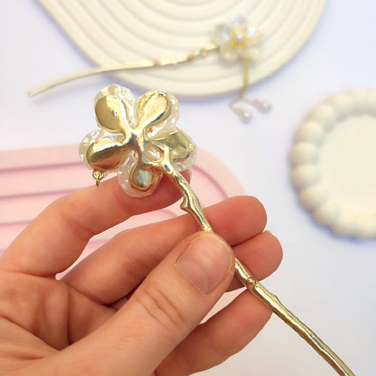 گل سینه کانزاشی ژاپنی طرح گل صدفی آویزدار